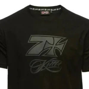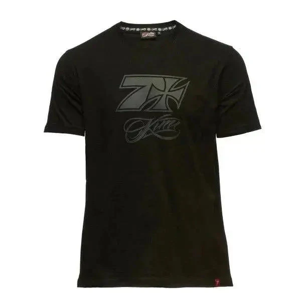 The black Kimi Räikkönen T-shirt “OG” shows the logo “Cross Seven” on the front, a combination of Kimi’s starting number 7 and the cross logo of West Coast Choppers. The back of the shirt picks up this emblem in a larger format and also features Räikkönen’s name. The West Coast Choppers manufacturer’s logo is printed on the left sleeve