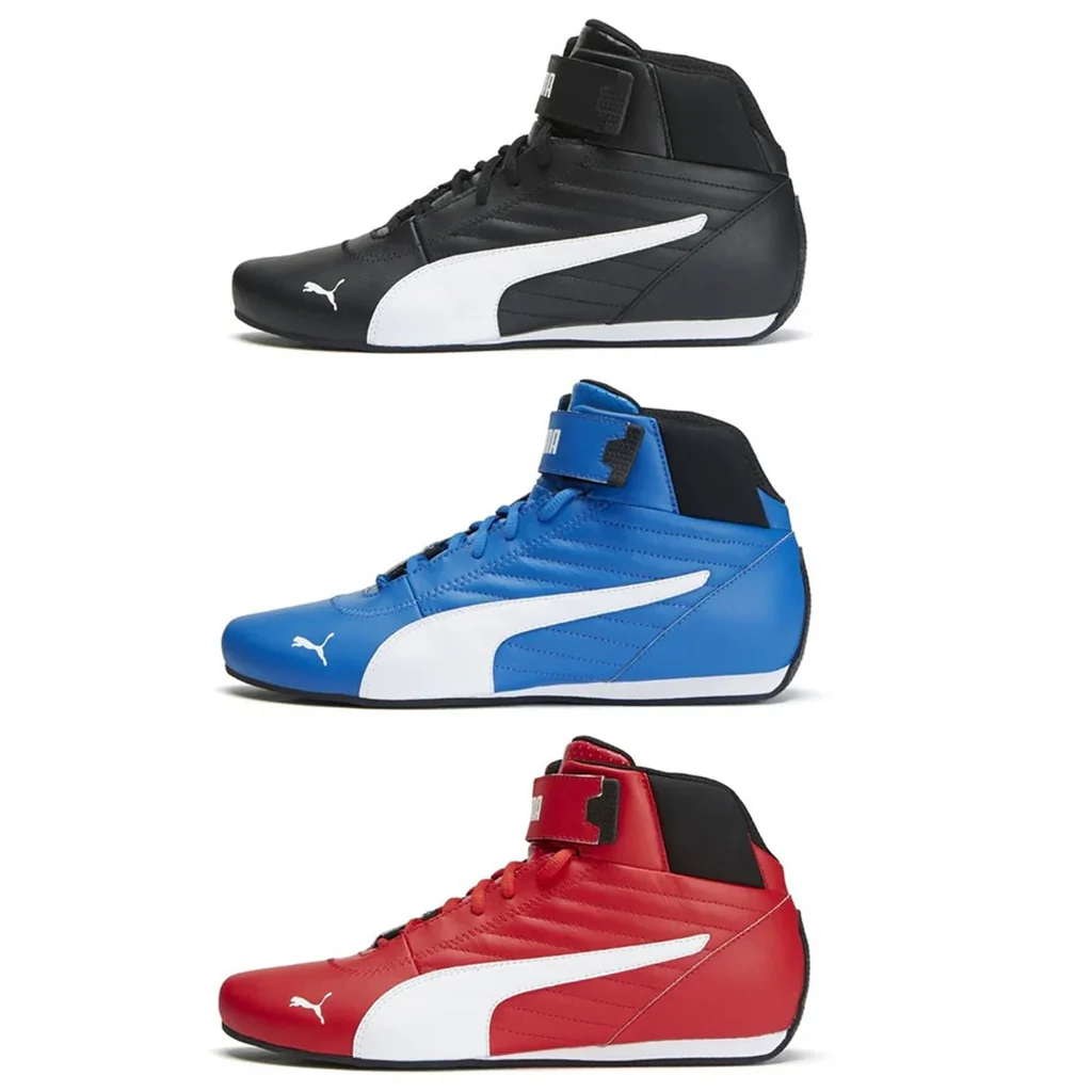 Crafted from genuine leather, these boots offer durability and a sleek look that stands out in any racing environment. The lightweight construction and ergonomic fit provide exceptional comfort, while the specially designed sole enhances pedal feel, allowing for precise control during every turn and acceleration. Featuring a stylish Puma design, these boots are perfect for both competitive racing and casual wear.