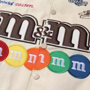 • Authentic M&M Racing Design: Featuring vibrant embroidery of the iconic M&M logos and racing details, this jacket pays homage to one of NASCAR’s most beloved sponsors, allowing you to wear your fandom with pride.
